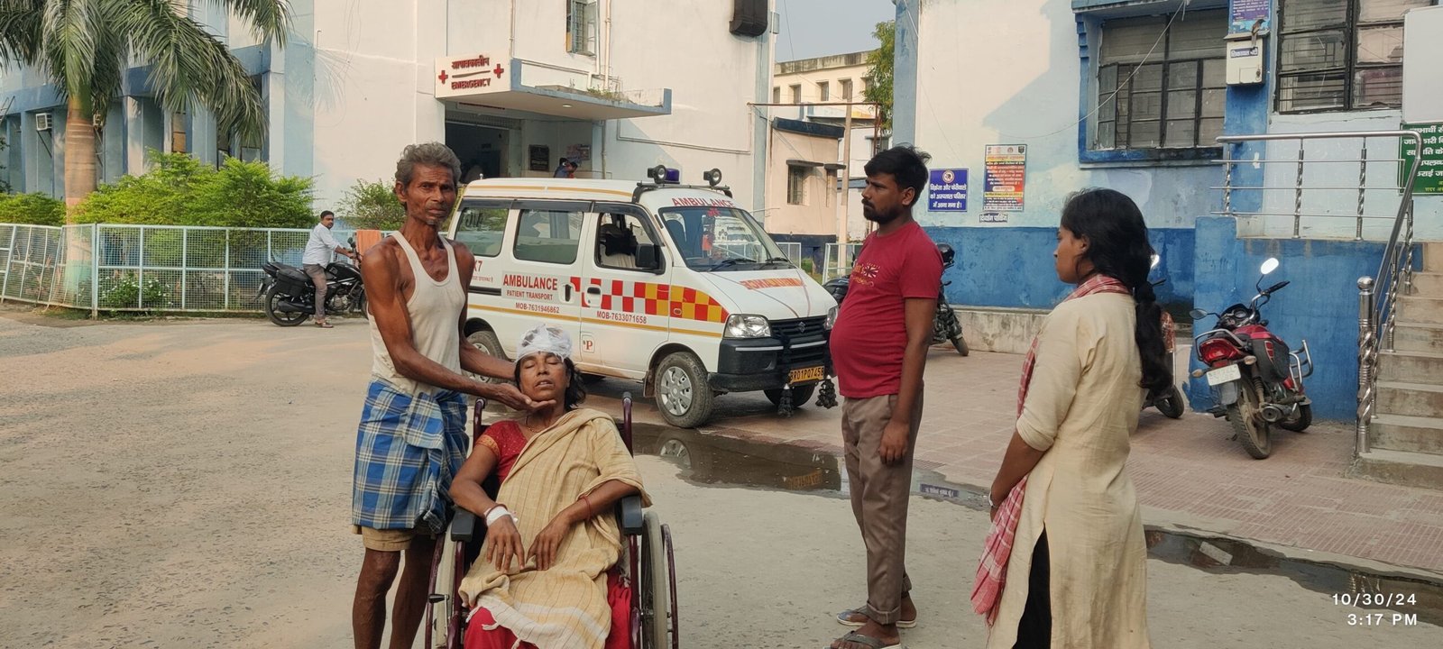सदर अस्पताल परिसर में सीटी स्कैन के लिए महिला को ले जाते परिजन।