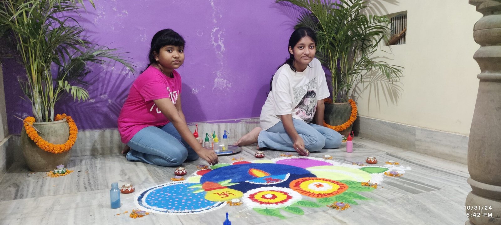 • बच्चों ने अपने-अपने घरों में रंग बिरंगी रंगोली बनाकर बनाया उत्सवी माहौल
