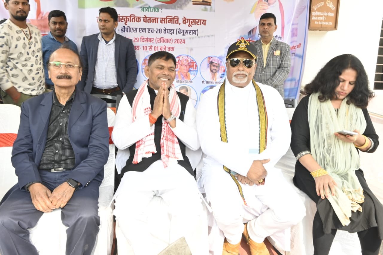 तरुण सांस्कृतिक चेतना समिति बेगूसराय के बैनर तले रविवार को राज्य स्तरीय कवि सम्मेलन का आयोजन तेघड़ा के डीपीएस स्कूल में किया गया। राज्य स्तरीय कवि सम्मेलन का उद्घाटन मुख्य अतिथि बिहार सरकार के खेल मंत्री सुरेन्द्र मेहता, विशिष्ट अतिथि एयरफोर्स के अवकाश प्राप्त वरीय पदाधिकारी चंद्रप्रकाश सिंह, आयोजन समिति के संस्थापक सह संरक्षक सीताराम शेरपुरी, डॉ. महेशचंद्र चौरसिया, आनंद जायसवाल, चर्चित साहित्यकार मिन्टू कुमार झा ने संयुक्त रूप से दीप प्रज्ज्वलित कर किया।कार्यक्रम की अध्यक्षता डॉ. महेशचंद्र चौरसिया ने की। मंच संचालन सीताराम शेरपुरी ने किया। कवि सम्मेलन में दूर-दूर से आए कवियों ने अपने जादुई अंदाज में हास्य कविता प्रस्तुत कर लोगों को खूब लोटपोट किया। कभी जिंदगी के अनछुए पहलुओं को उजागर किया तो कभी जिंदगी की सच्चाई को प्रस्तुत किया। कविता सुनकर लोग कभी जोर-जोर से ठहाके लगाते तो कभी उनके आंखों से खुशी के आंसू भी निकलते दिखे। बिहार के विभिन्न हिस्सों से आए मशहूर कवियों ने श्रोताओं को खूब रिझाया, गुदगुदाया और ठहाके लगवाए। वीर रस, हास्य, व्यंग्य, ओज और श्रृंगार के जाने माने कवियों ने अपने अपने ढंग, अंदाज और विभिन्न विधाओं में ऐसी काव्य सरिता बहाई कि श्रोताओं ने खूब डुबकियां लगाई। देश और राज्यों की राजनीति पर ऐसे-ऐसे बाण छोड़े की श्रोता हंस-हंसकर लोटपोट हो गए। मुख्य अतिथि खेल मंत्री सुरेंद्र मेहता एवं विशिष्ट अतिथि चंद्रप्रकाश सिंह को आयोजन समिति के अध्यक्ष आनंद जायसवाल, सचिव मिन्टू कुमार झा ने संयुक्त रूप से मिथिला पाग, साल, मोमेंटो से सम्मानित किया। कवि सम्मेलन को संबोधित करते हुए खेल मंत्री सुरेंद्र मेहता ने कहा कि कवि सम्मेलन कविता के माध्यम से कवि न्याय की स्थापना करते हैं। कवि अपने कविता के माध्यम से समाज को आगे बढ़ाने का काम करते है। हमारा देश कैसे विकास करे, कवि अच्छाई पर अपनी कलम से लिखते हैं। न्याय हमेशा जीतता रहे। यह कवि अपनी लेखनी से देश को आगे बढ़ाने का काम करते हैं।