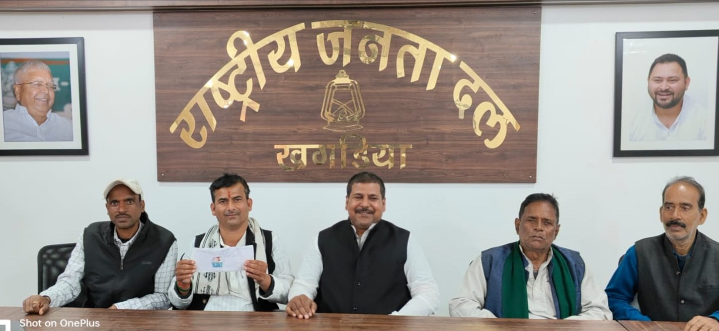 जिला प्रशासन द्वारा किसान क्रेडिट कार्ड (KCC) लोन न चुका पाने वाले किसानों पर गैर-जमानती वारंट जारी कर उन्हें जेल भेजने की कार्रवाई का राजद ने कड़ा विरोध किया है। मंगलवार को कृष्णापुरी बलुआही स्थित राजद जिला कार्यालय में आयोजित प्रेस कॉन्फ्रेंस में राजद जिलाध्यक्ष मनोहर कुमार यादव, जिला प्रवक्ता अजीत सरकार, जिला मीडिया प्रभारी रणवीर कुमार और अलौली प्रखंड कार्यकारी अध्यक्ष बालेश्वर पासवान ने प्रशासन की इस नीति को गरीब किसानों पर जुल्म बताया।