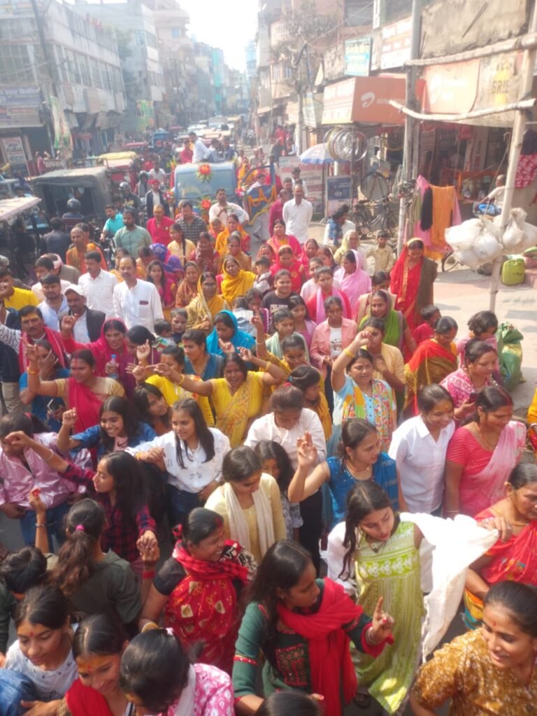 शहरवासियों ने पुष्प वर्षा कर भक्ति में डुबकी लगाई