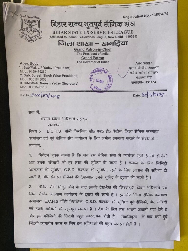 मांग : ईसीएचएस पॉलीक्लिनिक, सीएसडी कैंटीन, जिला सैनिक कल्याण कार्यालय एवं पूर्व सैनिक संघ कार्यालय के लिए स्थाई भूमि आवंटन की मांग; कई वरिष्ठ पूर्व सैनिक रहे मौजूद