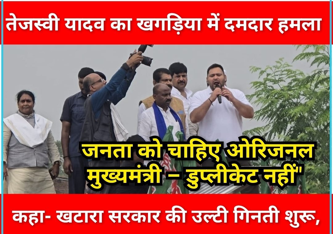तेजस्वी यादव का खगड़िया में दमदार हमला,”खटारा सरकार की उल्टी गिनती शुरू, जनता को चाहिए ओरिजनल मुख्यमंत्री – डुप्लीकेट नहीं”