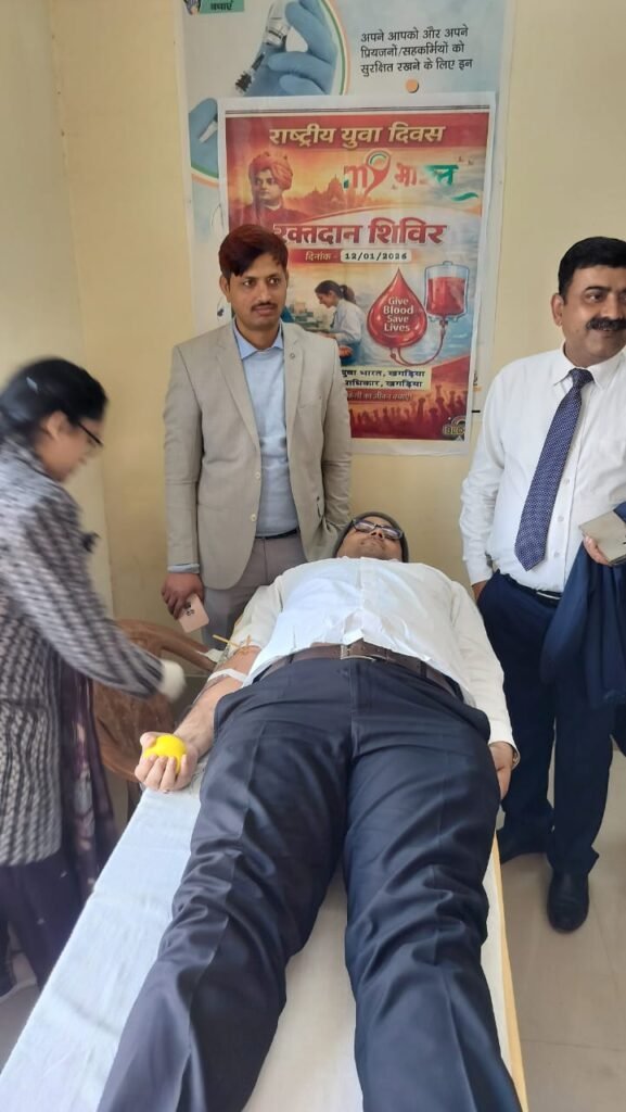 KBI KHAGARIA : राष्ट्रीय विधिक सेवा प्राधिकरण, नई दिल्ली एवं बिहार राज्य विधिक सेवा प्राधिकार, पटना के निर्देशानुसार राष्ट्रीय युवा दिवस के अवसर पर विधिक सेवा सदन, खगड़िया में रक्तदान शिविर सह नशीली दवाओं के दुष्प्रभाव एवं बाल विवाह उन्मूलन को लेकर जागरूकता सेमिनार का आयोजन किया गया। इस कार्यक्रम का संयुक्त आयोजन जिला विधिक सेवा प्राधिकार, खगड़िया एवं मेरा युवा भारत, खगड़िया द्वारा किया गया। इस आशय की जानकारी देते हुए जिला विधिक सेवा प्राधिकार के सचिव चंदन कुमार ने बताया कि प्रधान जिला एवं सत्र न्यायाधीश सह अध्यक्ष, जिला विधिक सेवा प्राधिकार, खगड़िया राजेश कुमार बच्चन की अध्यक्षता में कार्यक्रम आयोजित हुआ।