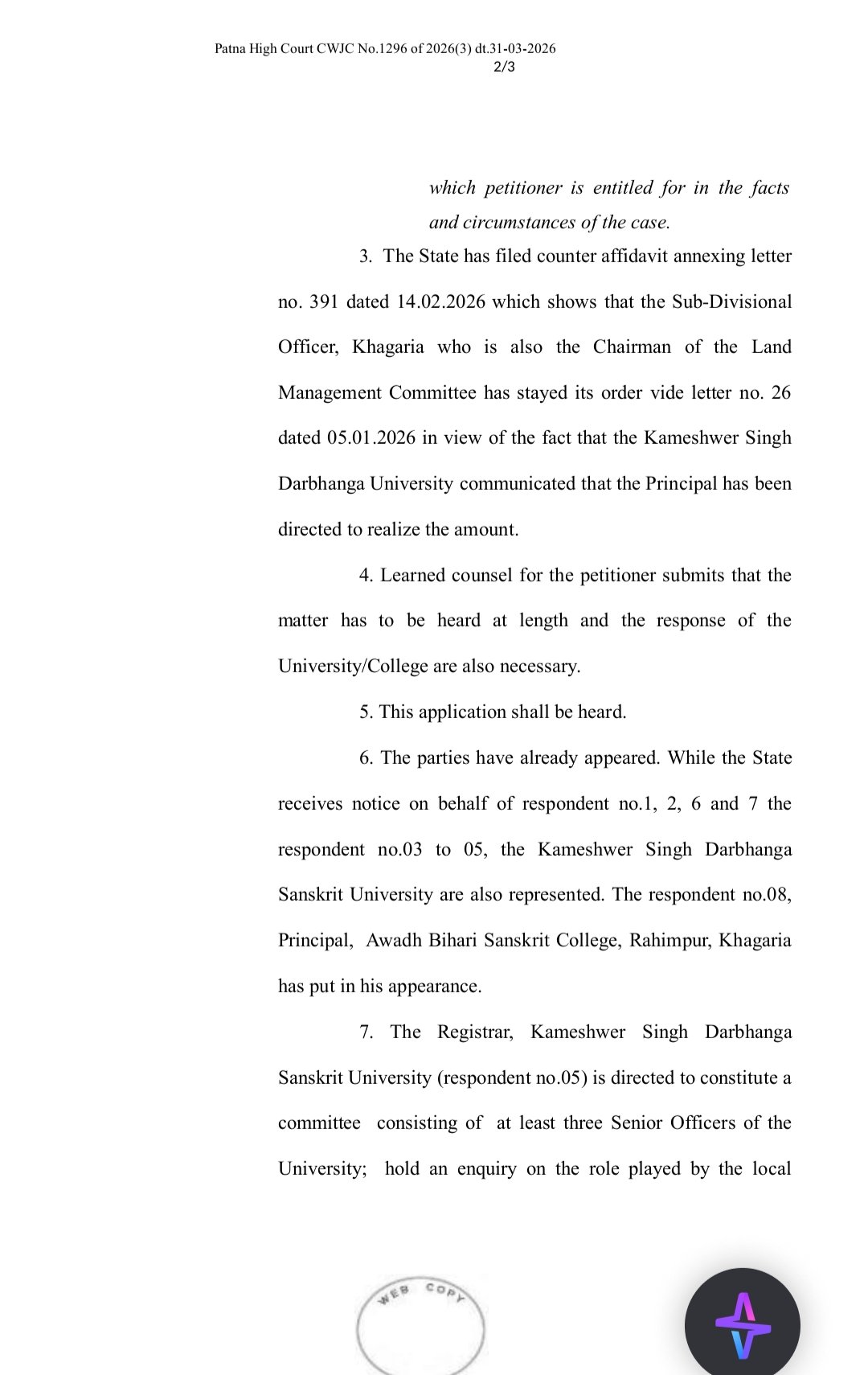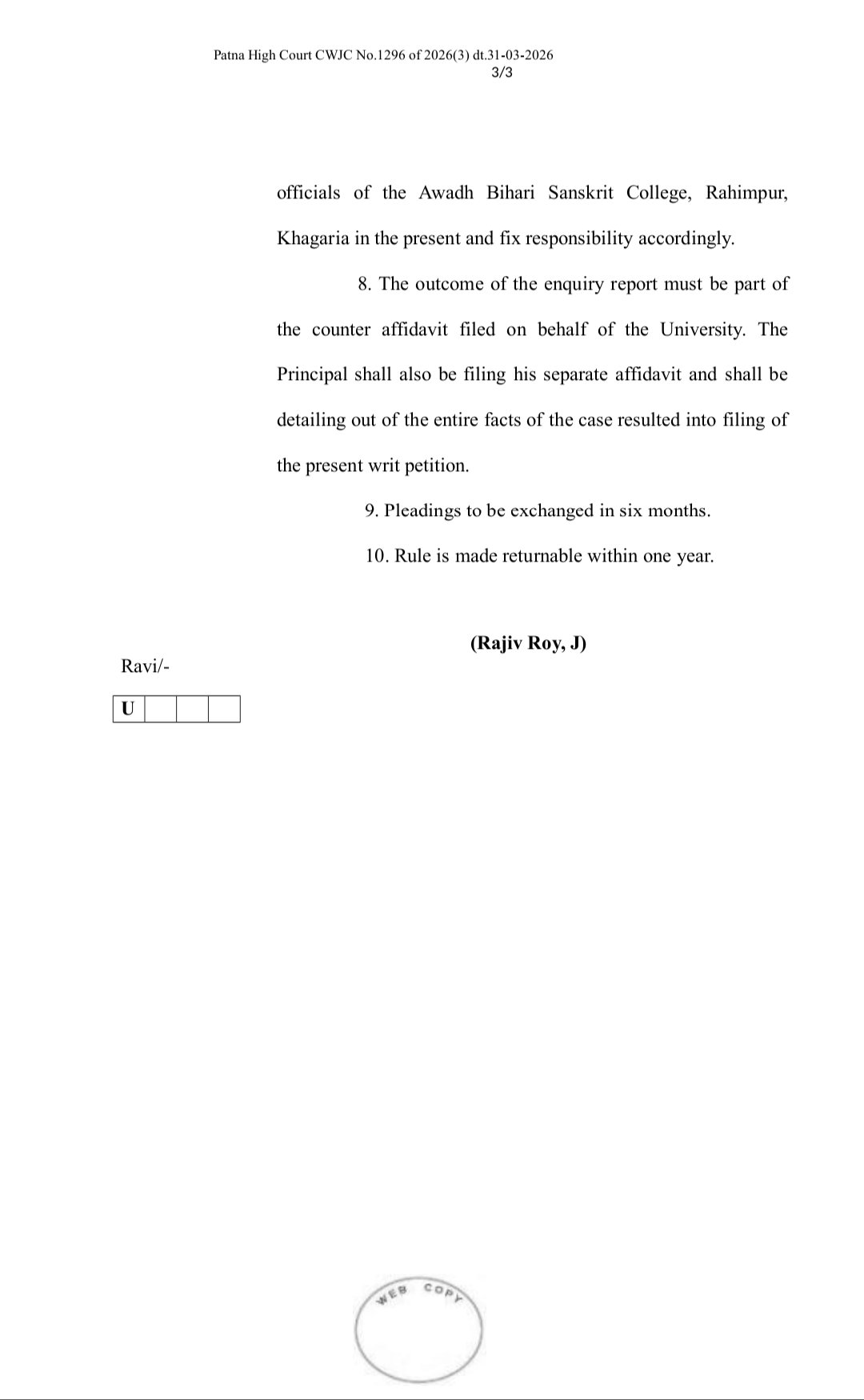 मामले की गंभीरता को देखते हुए कोर्ट ने कामेश्वर सिंह दरभंगा संस्कृत विश्वविद्यालय को निर्देश दिया है कि कम से कम तीन वरिष्ठ अधिकारियों की स्वतंत्र जांच समिति गठित की जाए। यह कमेटी खगड़िया के अवध बिहारी संस्कृत कॉलेज, रहीमपुर में हुए पूरे घटनाक्रम की परत-दर-परत जांच करेगी और यह तय करेगी कि आखिर किसकी भूमिका संदिग्ध है और किस पर जिम्मेदारी तय होगी।