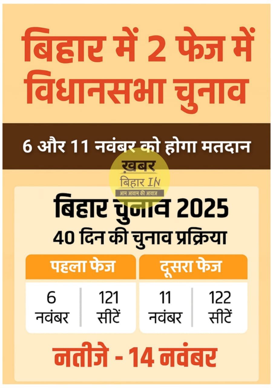 बिहार विधानसभा चुनाव 2025 : दो चरणों में होगा मतदान, 14 नवंबर को बनेगी नई सरकार केबीआई। पटना बिहार विधानसभा...